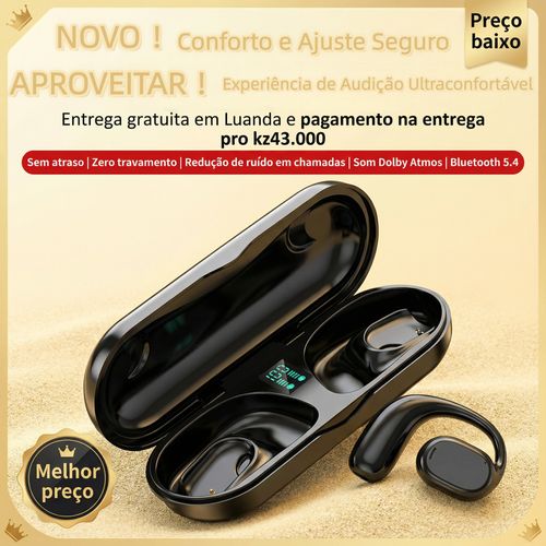 Fones de Ouvido Bluetooth Sem Fio com Condução Óssea de Orelha Aberta, Sem Inserção, Autonomia Extensa para Corrida e Atividades Gerais